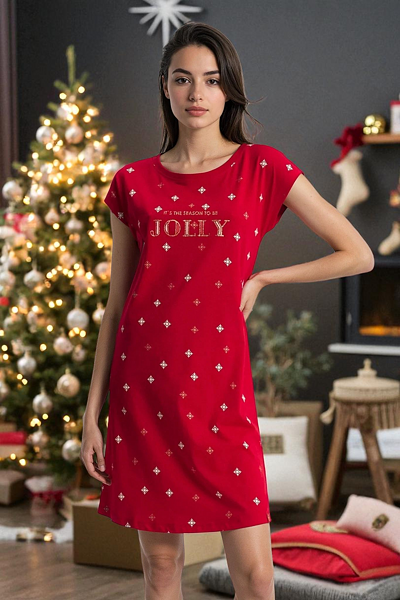 - Cămașa de noapte este decorată cu imprimeu de Crăciun și test auriu "It's the season to be jolly" .