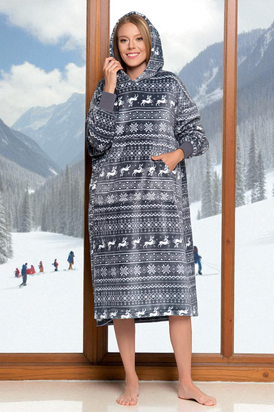 - Hanoracul maxi Jule gri cu model norvegian este confecționat din micropluș pe ambele părți.